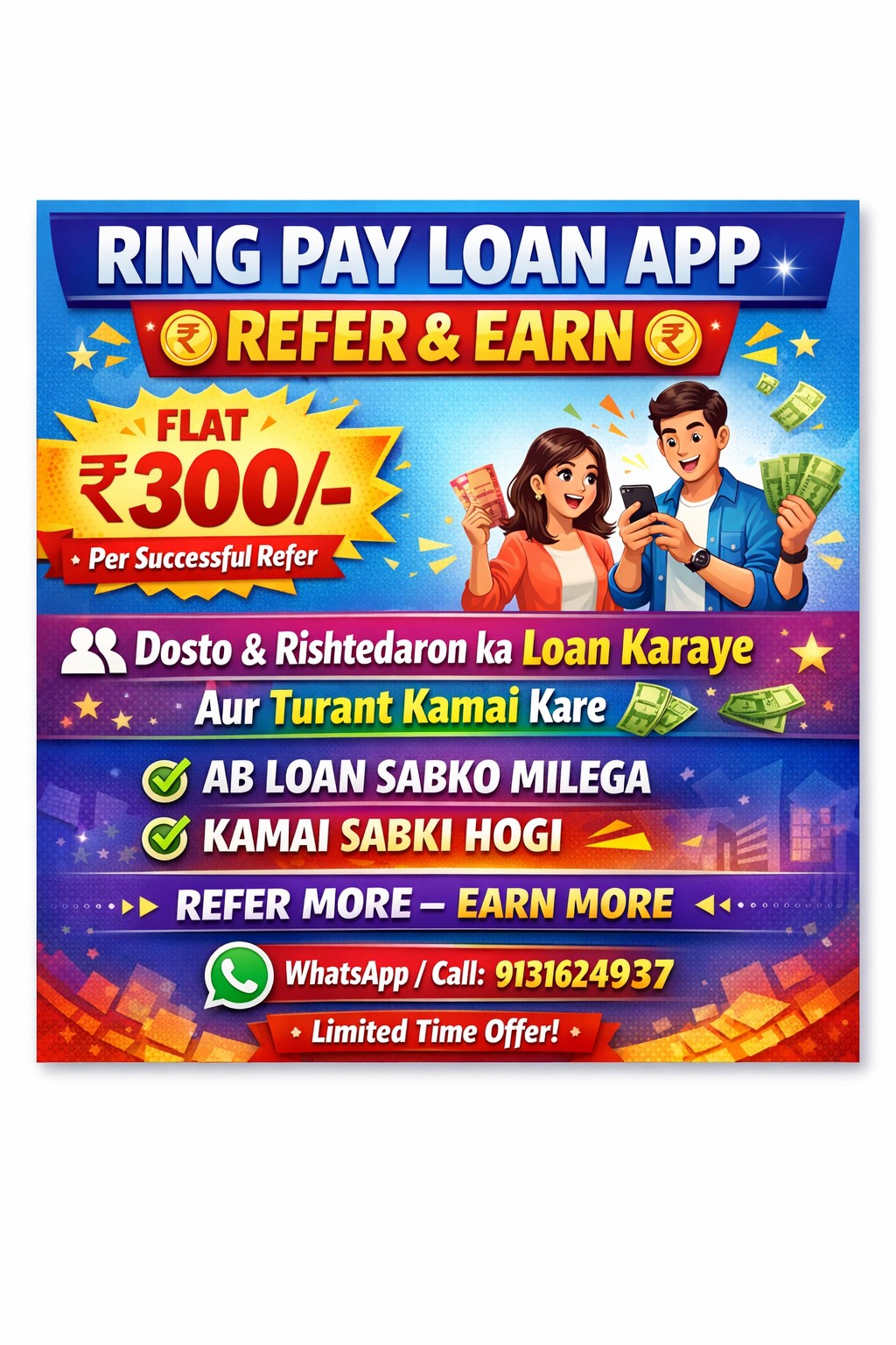 ๐Ÿ”ฅ RING PAY LOAN APP ๐Ÿ”ฅ ๐Ÿ’ฐ REFER & EARN PROGRAM ๐Ÿ’ฐ โœ… Flat โ‚น300 RS ๐Ÿ‘‰ Per Successful Refer ๐Ÿ‘ฅ Apne Dosto & Rishtedaron ka Loan Karaye ๐Ÿ’ต Aur Direct Earning Kare ๐ŸŽฏ AB LOAN SABKO MILEGA ๐ŸŽฏ KAMAI BHI SABKI HOGI ๐Ÿ“ˆ REFER MORE โ€“ EARN MORE ๐Ÿš€ LIMITED TIME OFFER ๐Ÿ“ฒ JOIN FAST ๐Ÿ“ž Contact / WhatsApp: 9131624937